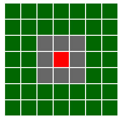 In the above picture, the red pixel is the (integer based) corner. win has been set to 7x7. zero_zone has been set to 3x3. So, only the green pixels are used to generating new equations. The grey pixels are ignored.